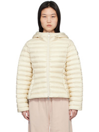 Down-filled and quilted nylon longue saison jacket. · DIST-certified down · Hood at stand collar · Two-way zip closure · Zip seam pockets · Felted logo patch at sleeve · Fully lined Supplier color: Light beige Fill: 90% goose down, 10% feathers. Body: 100% polyamide. Lining: 100% polyamide. Made in Moldova 251111F061006