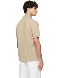 Organic cotton pique polo. · Stripe at rib-knit spread collar and cuffs · Three-button placket · Rubberized logo patch at chest · Vented side seams Supplier color: Sand Beige 100% cotton. Made in Turkey 251111M212000