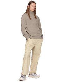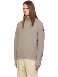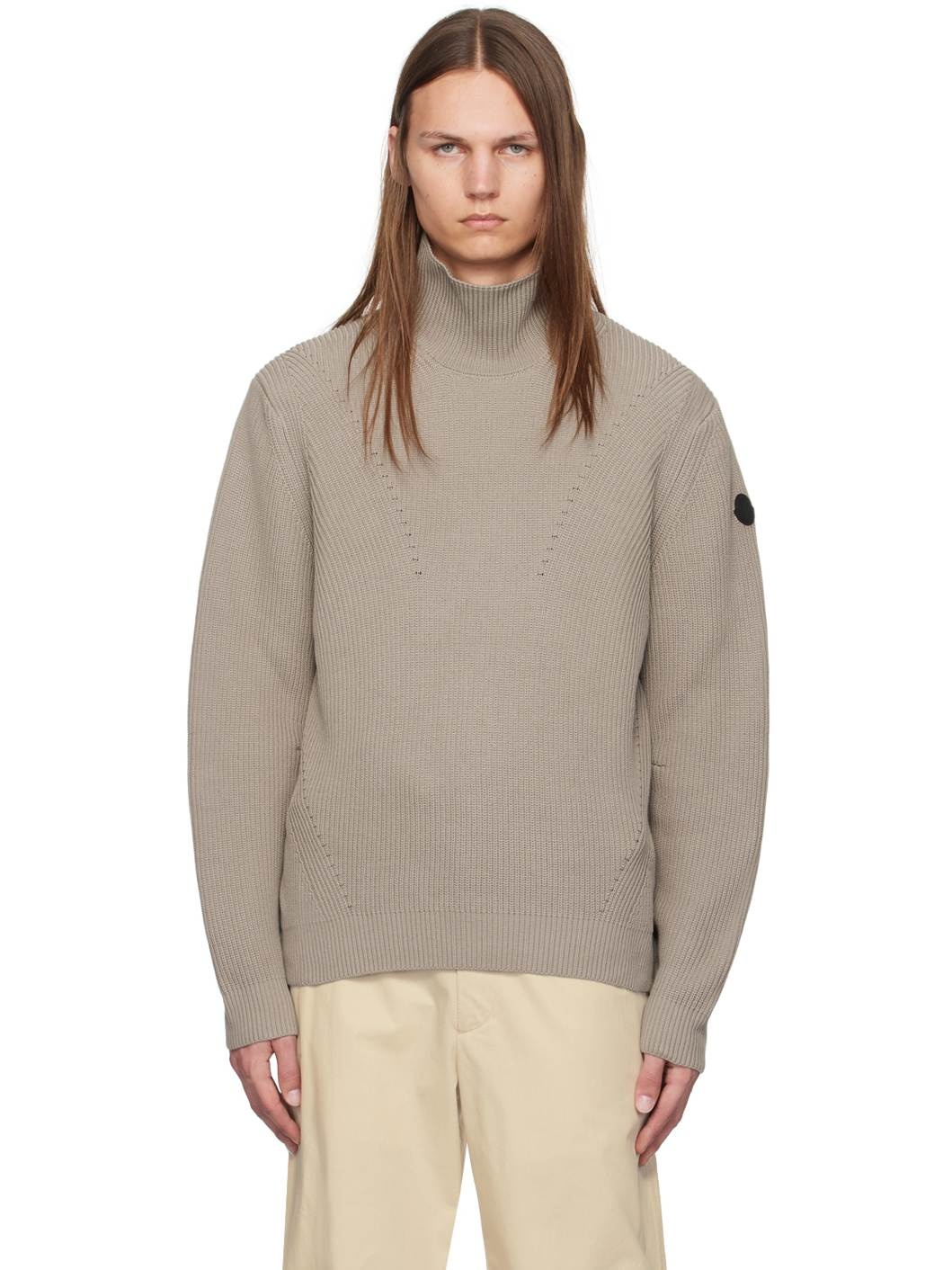 Knit cotton turtleneck. · Rib knit collar, hem, and cuffs · Rubberized logo patch at sleeve Supplier color: Beige 100% cotton. Made in Turkey 242111M205000