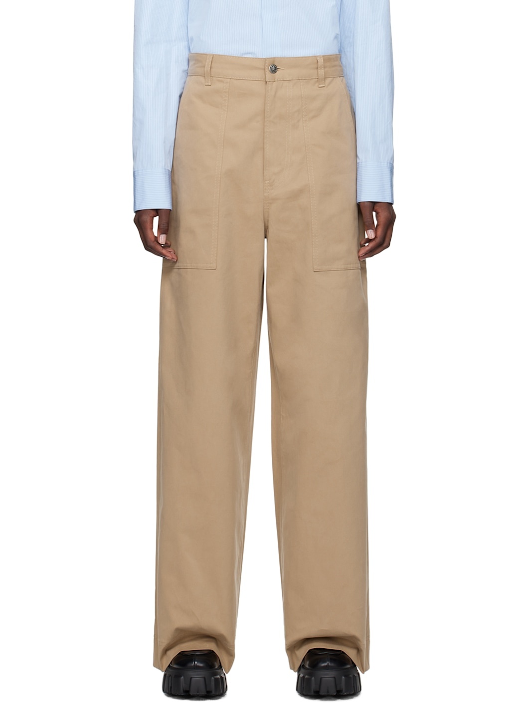 Straight-leg stretch cotton gabardine trousers. · Belt loops · Four-pocket styling · Zip-fly · Logo-engraved silver-tone hardware Supplier color: Beige 98% cotton, 2% elastane. Made in Italy 242111F087004