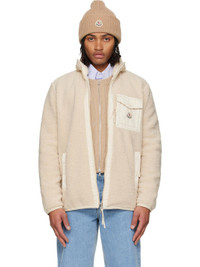 Sherpa fleece jacket. · Stand collar · Two-way zip closure · Taffeta flap pocket and felted logo patch at chest · Zip pockets at front · Elasticized hem and cuffs · Fully lined Supplier color: Light beige Body: 100% polyester. Trim 1: 100% polyamide. Trim 2: 100% polyester. Fill: 100% polyester. Lining: 100% polyamide. Made in Romania 252111M180084