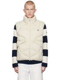 Down-filled and quilted nylon taffeta vest. · Funnel neck · Two-way zip closure · Felted logo patch at chest · Patch pockets · Zip pocket at interior · Fully lined Supplier color: Beige Fill: 90% goose down, 10% goose feather. Body: 100% nylon. Lining: 100% nylon. Made in Romania 242111M178131