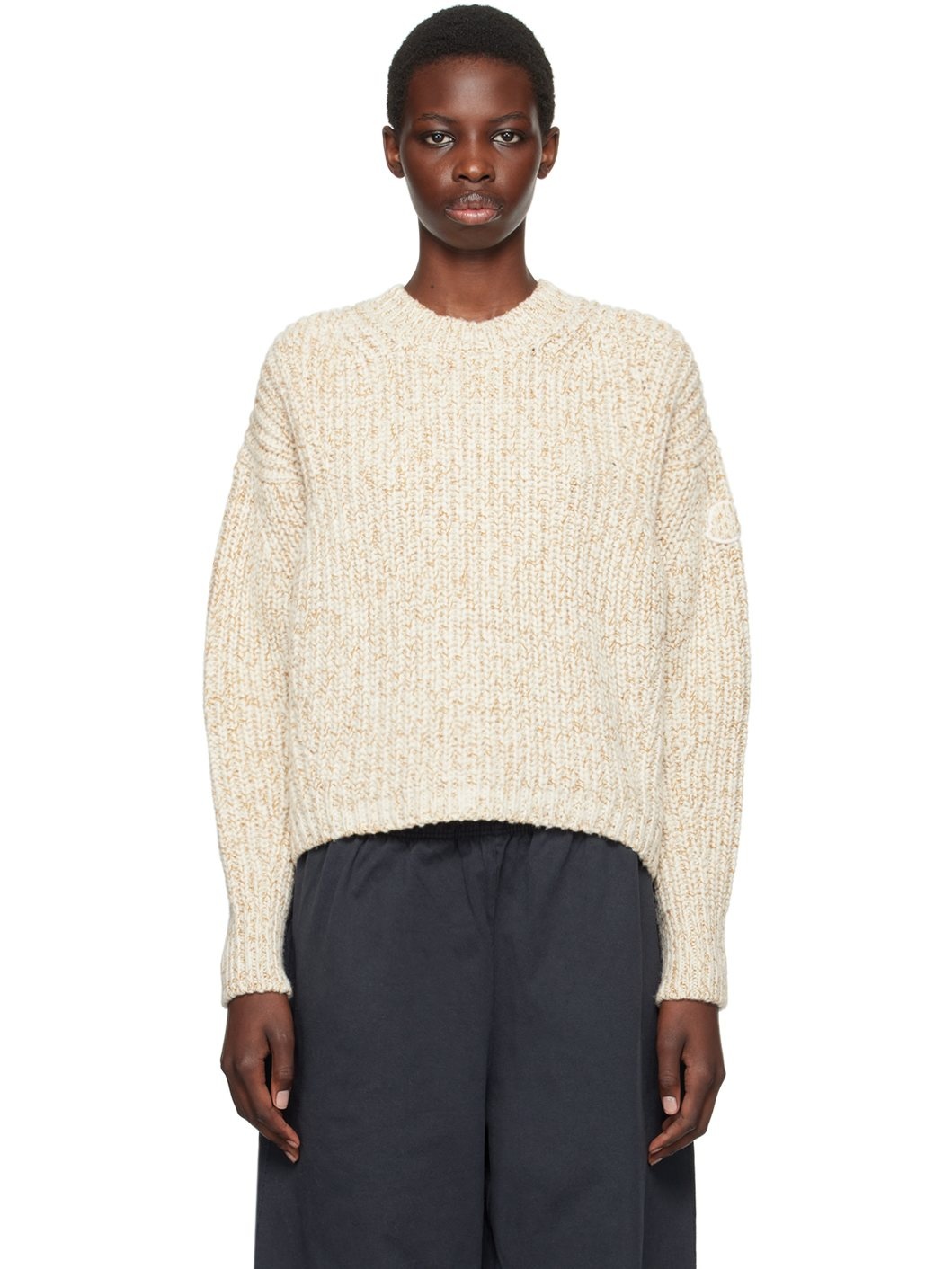 Heavyweight 3-gauge rib knit virgin wool-blend sweater. · Crewneck · Dropped shoulders · Logo patch at sleeve Supplier color: Light beige 71% virgin wool, 23% polyamide, 6% viscose. Made in Italy 242111F096002