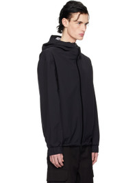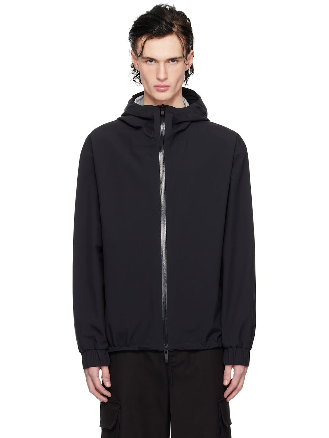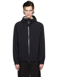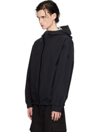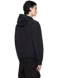 Nylon taffeta jacket. · Bungee-style drawstring at hood and hem · Two-way zip closure · Zip seam pockets · Rubber logo patch at sleeve · Elasticized cuffs · Fully lined Supplier color: Black 100% polyamide. Made in Romania 251111M180029