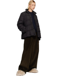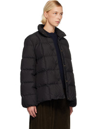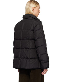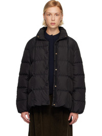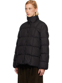 Down-filled and quilted taffeta jacket. · DIST-certified down · Stand collar · Press-stud closure · Zip pockets at waist · Bungee-style drawstring at hem · Leather logo patch at sleeve · Elasticized cuffs · Full longue saison lining Supplier color: Black Body: 100% polyester. Fill: 90% goose down, 10% feather. Lining: 100% polyamide. Made in Moldova 252111F061035