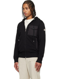 French terry hoodie. · Drawstring at hood · Two-way zip closure · Flap pocket at chest · Welt pockets at front · Rib-knit hem and cuffs · Felted logo patch at sleeve Supplier color: Black Body: 87% cotton, 13% polyamide. Trim: 100% polyamide. Made in Turkey 252111M202055