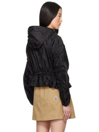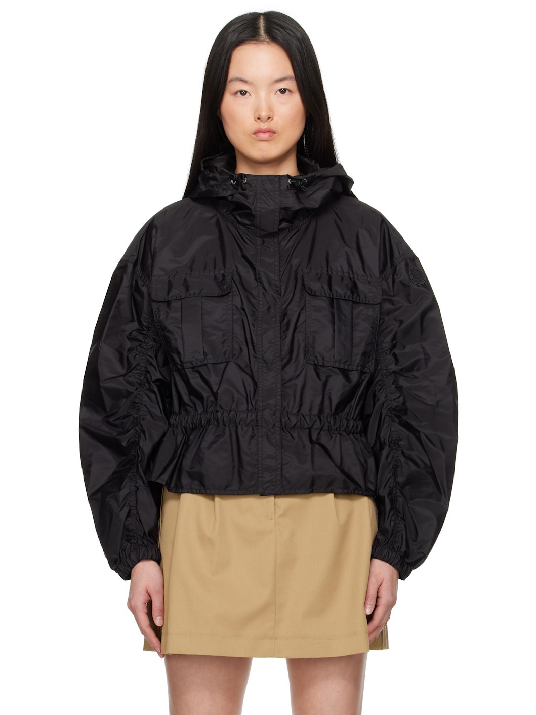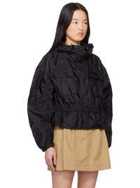 Water-repellent recycled nylon taffeta jacket. · Bungee-style drawstring at hood · Stand collar · Press-stud closure · Flap pockets · Bungee-style drawstring at peplum hem · Gathering at peplum hem and sleeves · Embroidered logo patch at sleeve · Elasticized cuffs · Partially lined Supplier color: Black 100% recycled polyamide. Made in Moldova 251111F063044