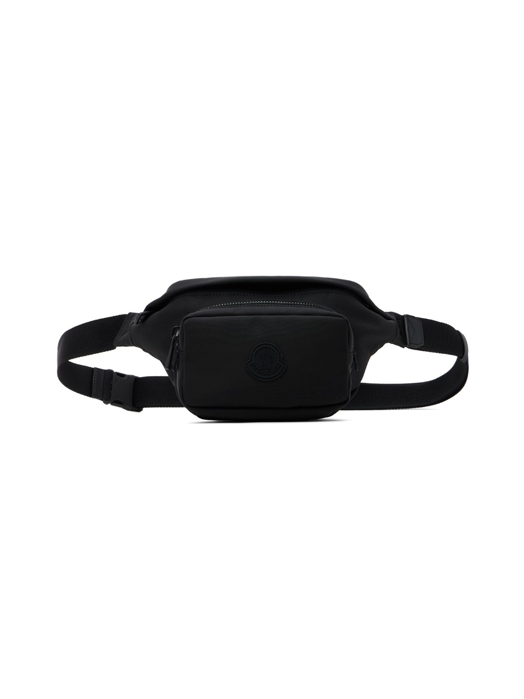 Water-repellent nylon canvas pouch in black. · Buffed leather trim throughout · Adjustable belt-style shoulder strap · Rubberized logo at face · Zip pocket at face and back face · Zip closure · Taffeta lining · H7" x W12.5" x D3" Supplier color: Black Textile, leather. Made in Romania 242111M171000