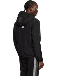PrimaLoft®-insulated 2.5L nylon poplin jacket. Water-repellent, windproof, and breathable. · Reflective logo printed throughout · Bungee-style drawstring at hood · Two-way zip closure · Zip pockets · Anti-slip trim at inner elasticized waistband · Embroidered logo patch at sleeve · Velcro tab at partially elasticized cuffs · Zip pocket at interior · Heat-sealed seams · Micro fleece and satin lining Part of the Day-Namic collection. Supplier color: Black Body: 100% polyamide. Fill: 100% polyester. Lining: 100% polyester. Made in Romania 242826M180002