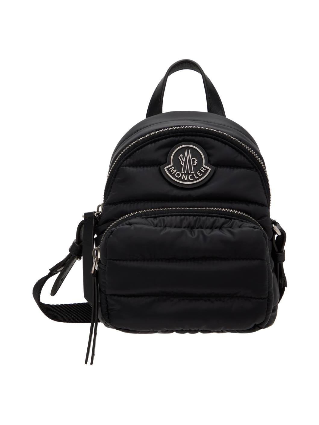 Water-repellent quilted nylon laque shoulder bag in black. · Buffed calfskin trim throughout · Carry handle · Adjustable and detachable crossbody strap · Logo hardware and zip pocket at face · Zip closure · Patch pocket at interior · Taffeta lining · H7" x W6" x D3.5" Supplier color: Black Textile, calfskin. Made in Hungary 242111F048008