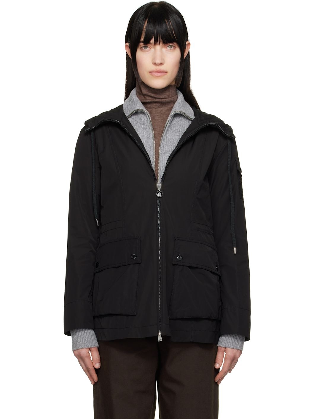 Polyester- and cotton-blend taffeta jacket. · Paneled construction · Drawstring at hood · Stand collar · Two-way zip closure · Flap pockets · Flap pocket and felted logo patch at sleeve · Bungee-style drawstring at back waist · Unlined Supplier color: Black 60% polyester, 40% cotton. Made in Italy 251111F063051