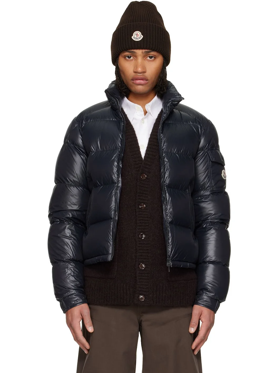 Down-filled and quilted nylon satin jacket. · DIST-certified down · Water-repellent · Stand collar · Two-way zip closure · Zip pockets at front · Bungee-style drawstring at hem · Flap pocket and felted logo patch at sleeve · Adjustable press-stud fastening at elasticized cuffs · Zip pocket at interior · Fully lined Supplier color: Black Body: 100% polyamide. Fill: 90% goose down, 10% feather. Lining: 100% polyamide. Made in Moldova 252111M178025