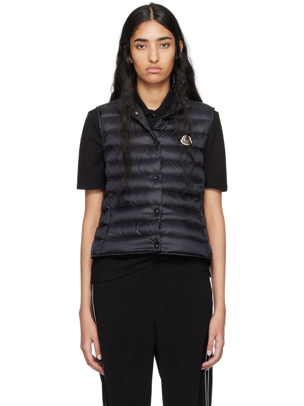 Down-filled quilted nylon satin vest. · Stand collar · Press-stud closure · Tricolor felted logo patch at chest · Zip pockets · Full nylon satin lining Supplier color: Black Fill: 90% down, 10% feather. Body: 100% polyamide. Lining: 100% polyamide. Made in Armenia 242111F061009