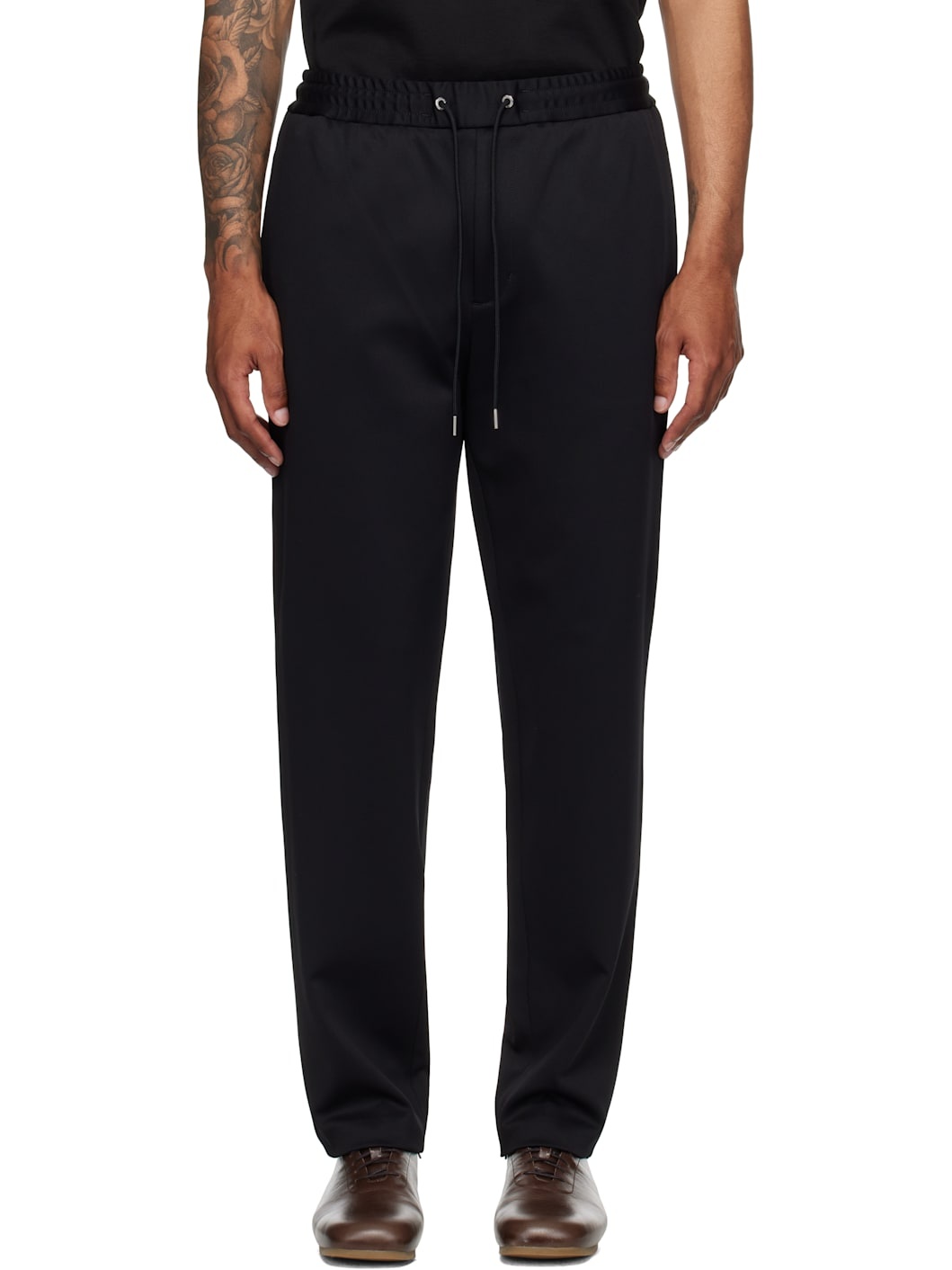 Stretch nylon twill trousers. · Drawstring at elasticized waistband · Four-pocket styling · Zip fly · Felted logo patch at back Supplier color: Black 96% polyamide, 4% elastane. Made in Romania 252111M191048