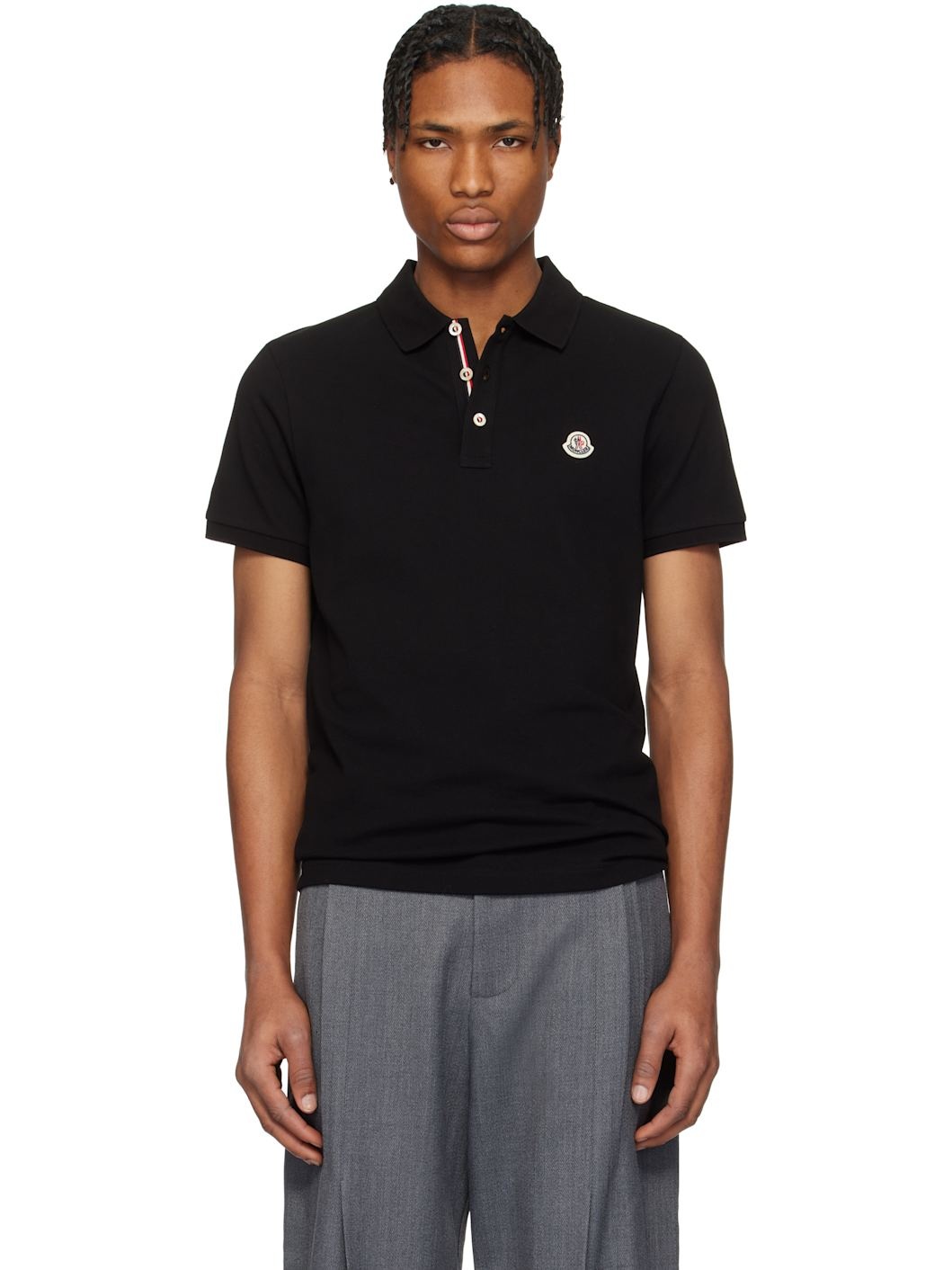 GOTS-certified organic cotton pique polo. · Rib-knit spread collar and cuffs · Tricolor grosgrain trim at three-button placket · Felted logo patch at chest · Tennis-tail hem · Logo-engraved mother-of-pearl hardware Supplier color: Black 100% organic cotton. Made in Turkey 251111M212031