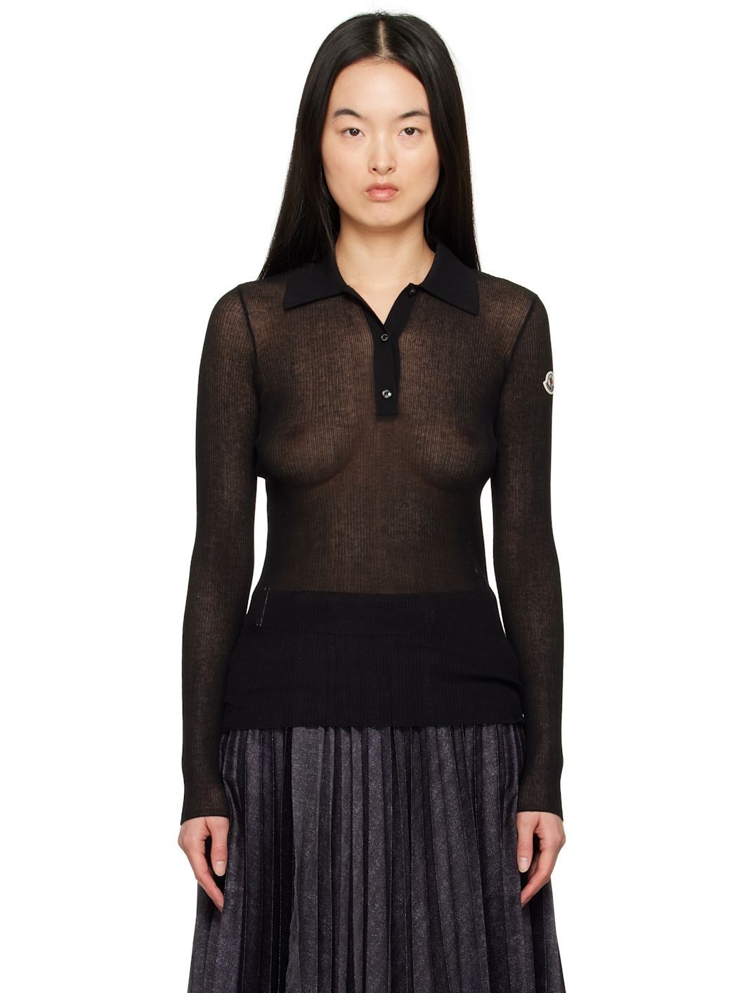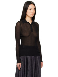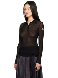 Semi-sheer rib-knit cotton-blend polo. · Spread collar · Three-button placket · Felted logo patch at sleeve Supplier color: Black 82% cotton, 18% polyamide. Made in Romania 251111F108004