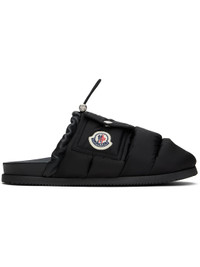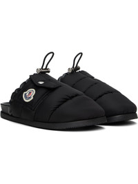 Insulated and quilted taffeta slippers in black. · Leather collar and bungee-style drawstring · Flap pocket and logo patch at outer side · Molded rubber footbed · Treaded rubber sole · Logo-engraved silver-tone hardware Supplier color: Black Upper: textile, leather. Sole: rubber. Made in Italy 251111F121000