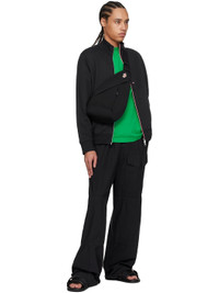 Grained leather slip-on sandals in black. · Open toe · Partially elasticized straps at vamp · Crisscrossing velcro webbing strap at vamp · Logo patch at outer side · Logo printed at molded footbed · Treaded rubber sole Supplier color: Black Upper: leather. Sole: rubber. Made in Italy 251111M234005