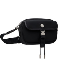 Taffeta shoulder bag in black. · Buffed leather trim throughout · Adjustable logo-woven webbing crossbody strap · Logo plaque and flap pocket at face · Zip closure · Zip pocket at interior · Moire lining · Logo-engraved silver-tone hardware · H5.5" x W7.5" x D2" Supplier color: Black Body: 100% polyester. Lining: 100% polyamide. Made in Italy 251111F045000