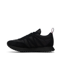 Low-top lightweight suede, buffed leather, and quilted nylon taffeta sneakers in black. · Lace-up closure · Pull-loop at padded tongue and heel tab · Padded collar · Logo applique at sides and heel counter · Mesh lining · TPU foam rubber midsole · Treaded rubber sole Supplier color: Black Upper: textile, leather. Sole: thermoplastic polyurethane, rubber. Made in Italy 242111M237012
