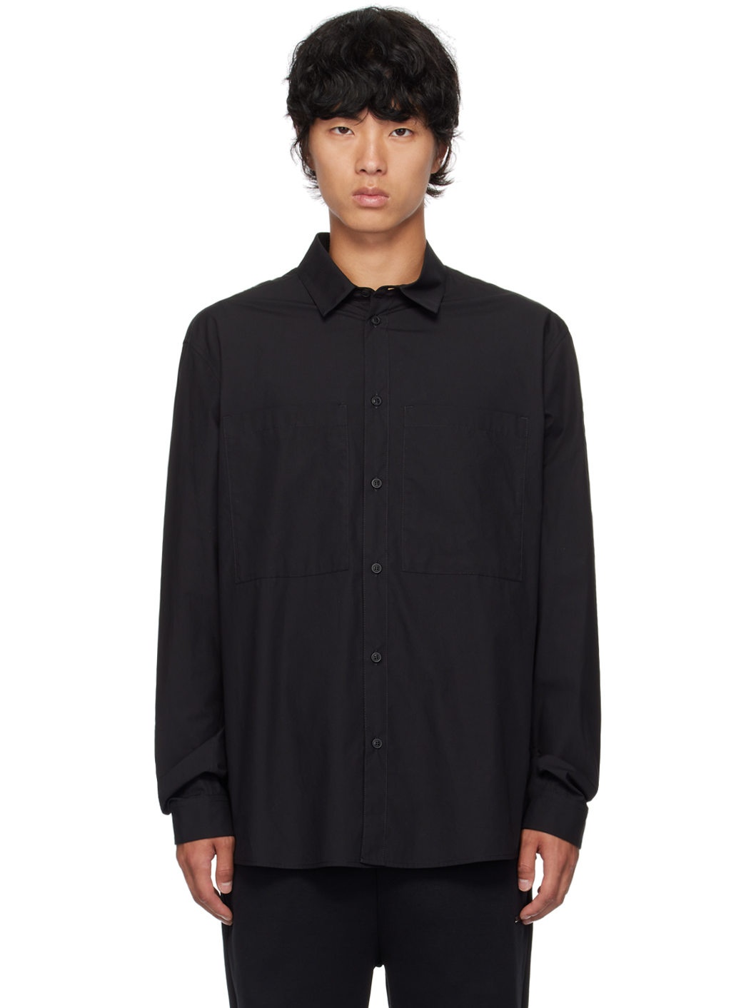 Cotton poplin shirt. · Spread collar · Button closure · Patch pockets · Rubberized logo patch at sleeve · Single-button barrel cuffs Supplier color: Black 100% cotton. Made in Romania 242111M192029