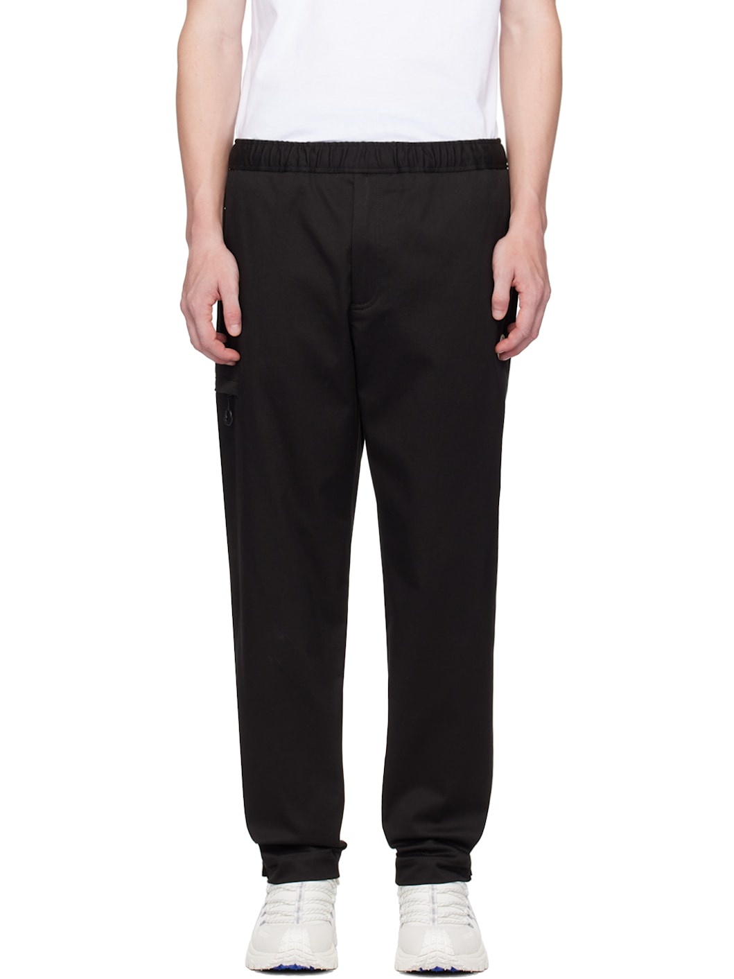 Stretch cotton twill trousers. · Concealed drawstring at elasticized waistband · Four-pocket styling · Zip-fly · Felted logo patch at leg · Adjustable velcro tab at cuffs · Zip pocket at outseam Supplier color: Black 98% cotton, 2% elastane. Made in Romania 242111M191033