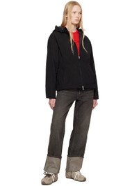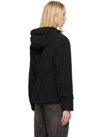 Polyester- and cotton-blend taffeta jacket. · Bungee-style drawstring at hood · Stand collar · Two-way zip closure · Welt pockets · Darts at front · Gathering at sleeves · Embroidered logo patch at sleeve · Buttoned barrel cuffs · Elasticized trim at back waist · Fully lined Supplier color: Black Body: 60% polyester, 40% cotton. Lining: 100% polyester. Made in Armenia 251111F063047