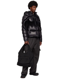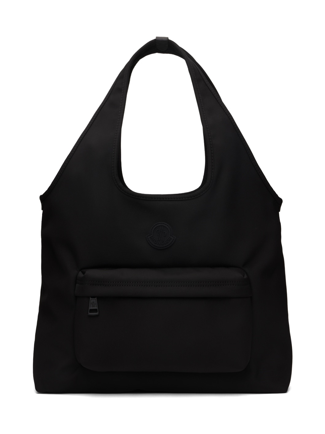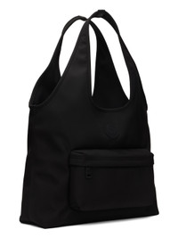 Water-repellent nylon-blend canvas tote in black. · Leather trim at integrated carry handles · Rubberized logo patch at face · Zip compartment · Zip pocket at interior · Water-repellent nylon taffeta lining · H14" x W17.5" x D4.5" · Total height: H23" Supplier color: Black Body: 53% polyamide, 47% polyester. Lining: 100% polyamide. Made in Romania 242111M172005