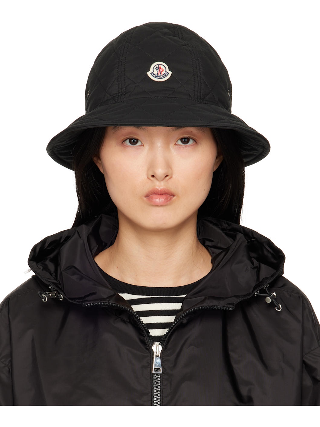 Insulated and quilted plain-woven cotton- and nylon-blend bucket hat in black. · Logo patch at face · Metal eyelets at sides · Grosgrain browband · Cotton canvas lining Supplier color: Black Body: 73% cotton, 27% nylon. Fill: 100% polyester. Lining: 100% cotton. Made in Bulgaria 251111F015001
