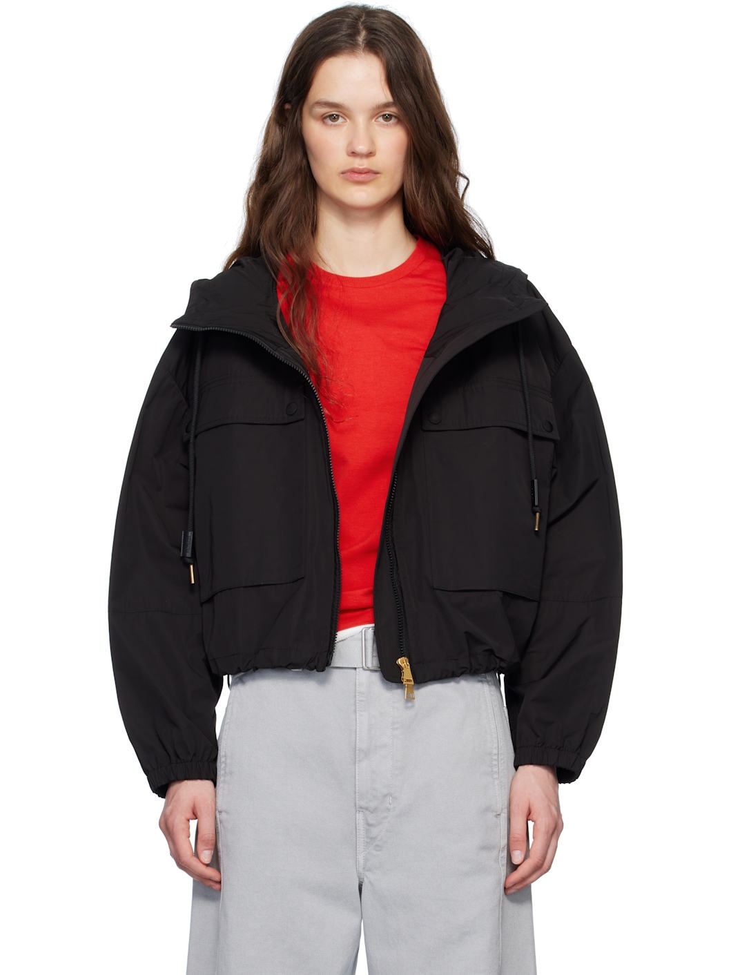 Polyester- and cotton-blend poplin jacket. · Water-repellent · Drawstring at hood · Two-way zip closure · Flap pockets · Bungee-style drawstring at cropped hem · Dropped shoulders · Felted logo patch at sleeve · Elasticized cuffs Supplier color: Black Body: 60% polyester, 40% cotton. Trim: 60% polyester, 40% cotton. Made in Armenia 251111F063046