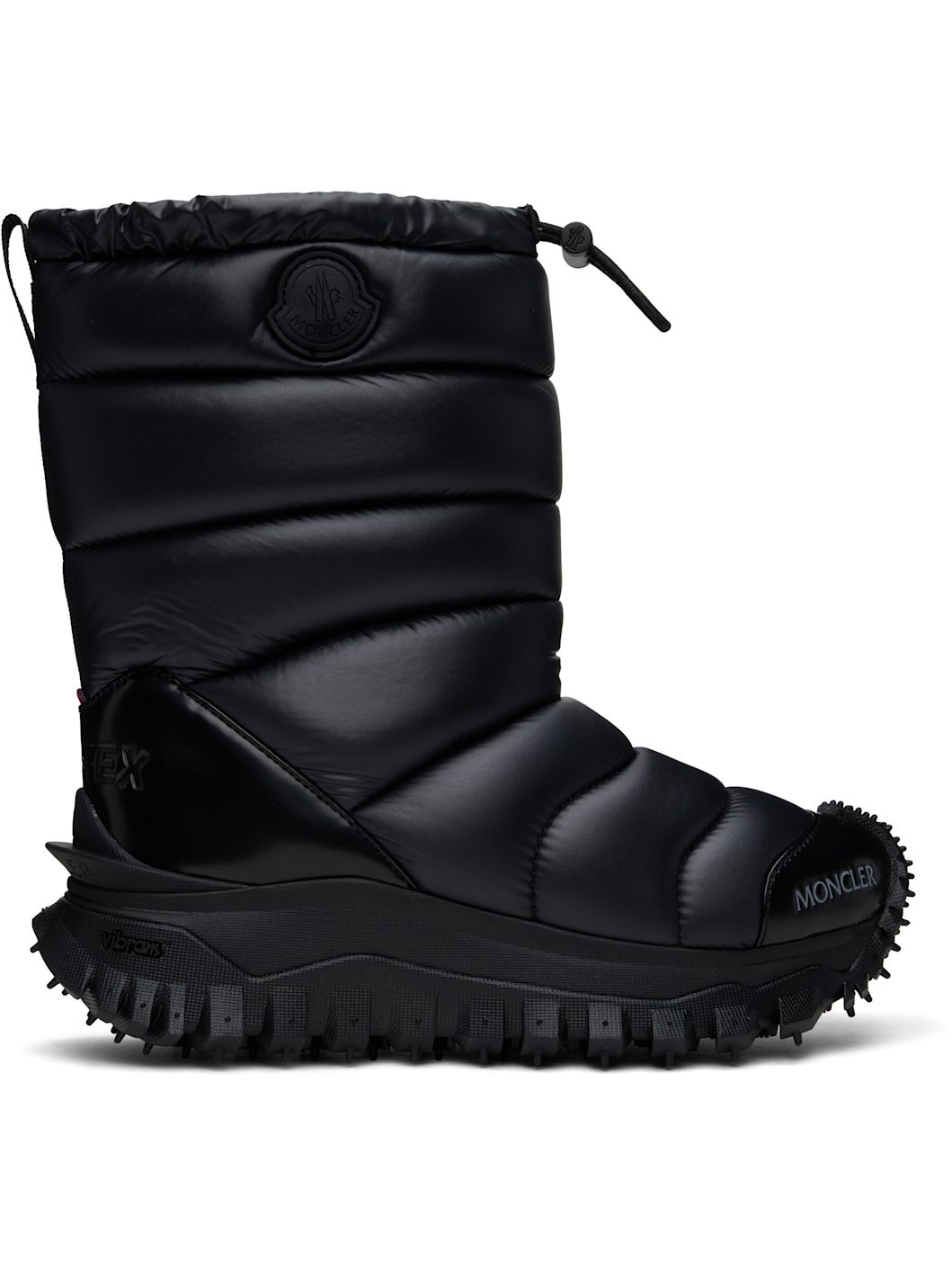 Mid-calf padded and quilted taffeta boots in black. · Buffed leather trim throughout · Logo embossed at rubber cap toe · Bungee-style drawstring at collar · Rubberized logo patch at outer side · Reflective pull-loop at heel collar · Tricolor flag at heel tab · Logo-embossed rubberized trim at heel counter · OrthoLite® insole · Jersey lining with waterproof GORE-TEX® membrane · Textured rubber midsole · Treaded Vibram® Megagrip rubber outsole Supplier color: Black Upper: textile, leather. Sole: rubber. Made in Viet Nam 242111F113000