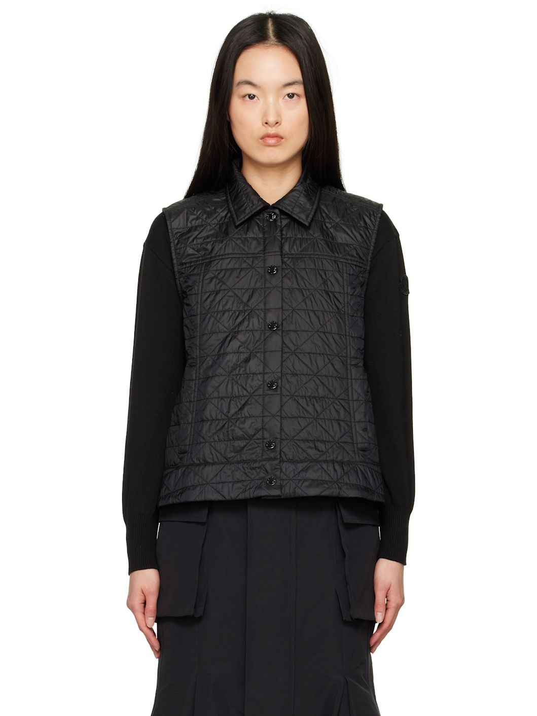Padded and quilted nylon satin vest. · Spread collar · Press-stud closure · Welt pockets · Embroidered logo patch at front hem · Patch pockets at interior · Full nylon satin lining Supplier color: Black Body: 100% polyamide. Fill: 100% polyester. Lining 1: 100% polyamide. Lining 2: 100% polyamide. Made in Moldova 251111F068006