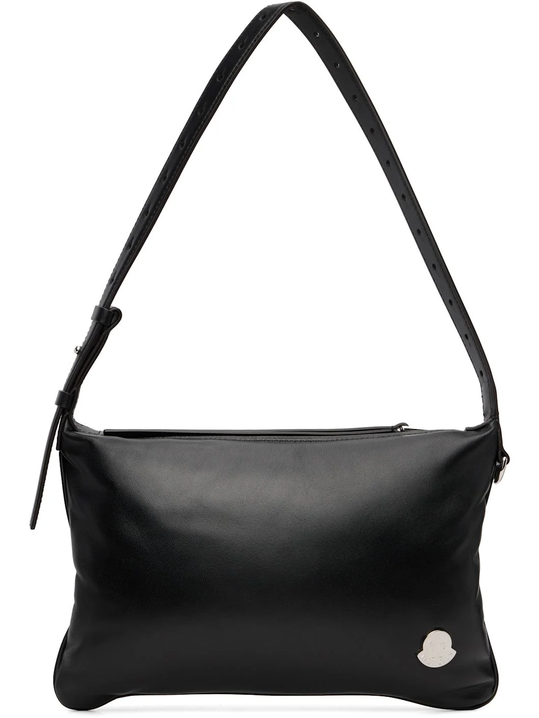 Down-filled buffed lambskin shoulder bag. · DIST-certified down · Adjustable shoulder strap · Logo hardware at face · D-ring at side · Logo embossed at back face · Zip closure · Patch pocket at interior · Nylon lacque lining · H7" x W11" x W3" Supplier color: Black Fill: 90% goose down, 10% goose feather. Body: 100% lambskin. Lining: 100% polyamide. Made in Italy 252111F048000