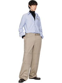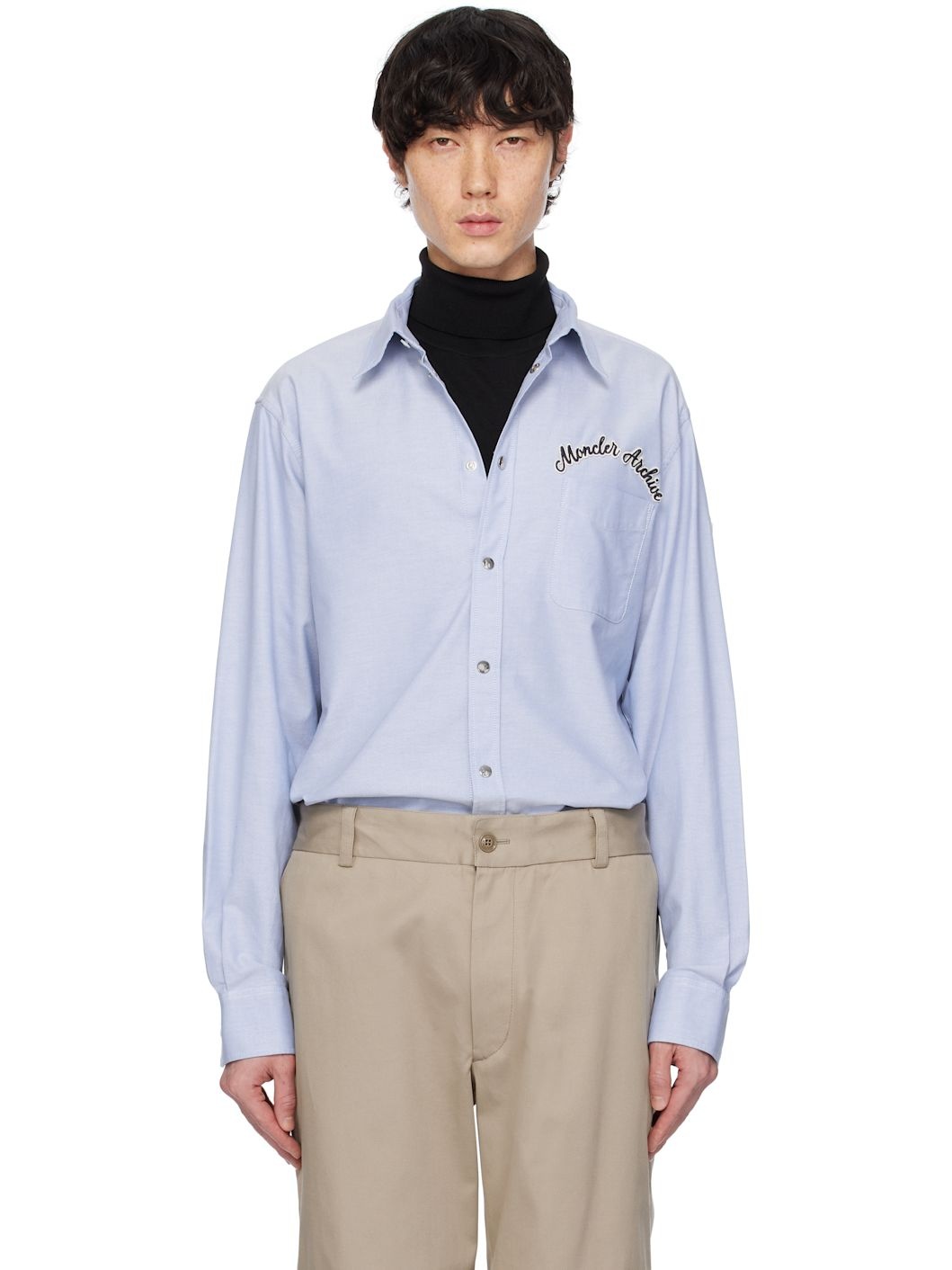 Cotton oxford cloth shirt. · Button-down spread collar · Press stud closure · Logo appliques at chest · Patch pocket · Shirttail hem · Pleats at press-stud barrel cuffs · Box pleat at back yoke Supplier color: Light blue 100% cotton. Made in Romania 251111M180025