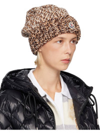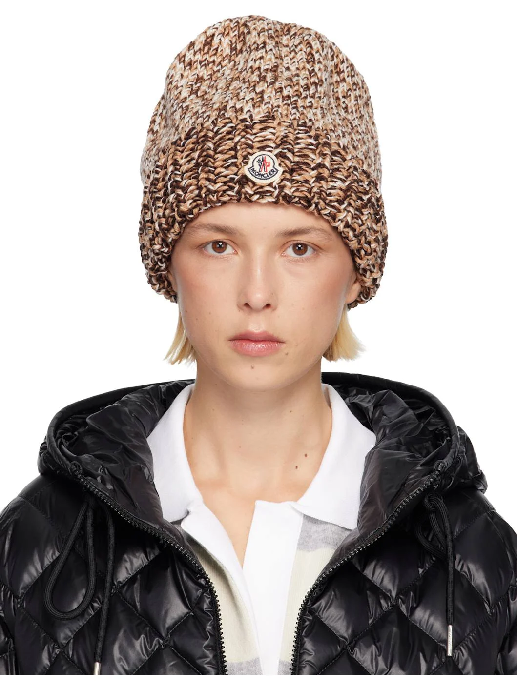 3-gauge and 1.5-gauge knit virgin wool beanie. · Marling throughout · Embroidered logo patch at rolled brim Supplier color: Brown/Beige multi 100% virgin wool. Made in Moldova 252111F016013