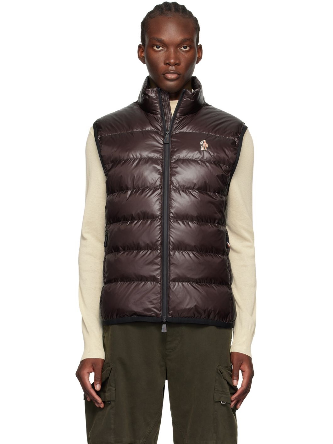 DIST-certified down-filled quilted nylon ripstop and stretch nylon interlock jersey vest. Breathable. · Paneled construction · Stand collar · Two-way zip closure · Embroidered logo patch at chest · Elasticized trim at hem and armscyes · Zip pockets · Partial mesh and satin lining · Logo-engraved black hardware Supplier color: Brown Fill: 90% goose down, 10% goose feather. Body 1: 100% polyamide. Body 2: 86% polyamide, 14% elastane. Lining 1: 100% polyamide. Lining 2: 100% polyester. Made in Romania 242826M178001
