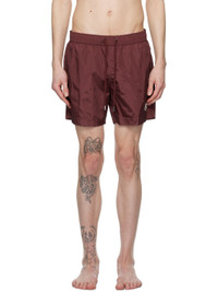 Nylon taffeta swim shorts. · Drawstring at elasticized waistband · Three-pocket styling · Felted logo patch at cuff · Integrated briefs-style mesh lining Supplier color: Soft burgundy Body: 100% polyamide. Lining: 100% polyamide. Made in Albania 251111M208005