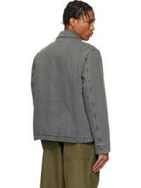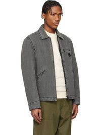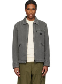Padded non-stretch denim overshirt. Fading throughout. · Spread collar · Two-way zip closure · Zip pockets · Felted logo patch at chest · Adjustable press-stud cuffs · Gusset at back armscyes · Full recycled polyester taffeta lining · Logo-engraved black hardware Supplier color: Black Body: 100% cotton. Lining: 100% recycled polyester. Fill: 100% polyester. Made in Italy 251111M177003