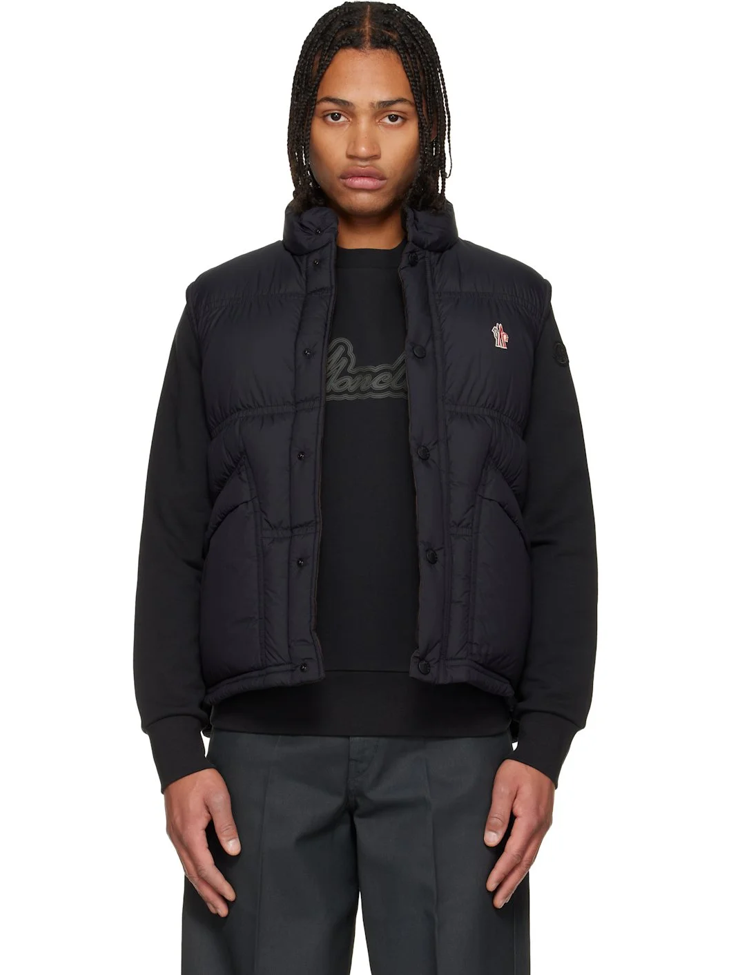 Down-filled and quilted nylon taffeta vest. · DIST-certified down · Water-repellent and lightweight · Stand collar · Press-stud closure · Embroidered logo patch at chest · Flap pockets at front · Vent at side seams · Full Polartec® fleece lining Supplier color: Black Body: 100% polyamide. Trim: 100% cotton. Fill: 90% goose down, 10% feather. Lining: 97% polyester, 3% elastane. Made in Moldova 252826M178015