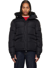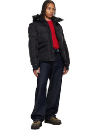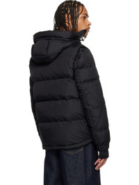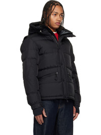 Down-filled and quilted nylon taffeta jacket. · DIST-certified down · Bungee-style drawstring at hood · Funnel neck · Two-way zip closure with press-stud placket · Zip pockets at front · Bungee-style drawstring at hem · Embroidered logo patch at sleeve · Press-stud tab at elasticized cuffs · Thumbhole at inset jersey cuffs · Zip pocket and snow skirt at interior · Fully lined Supplier color: Black Body: 100% polyamide. Trim: 93% polyester, 7% elastane. Fill 1: 100% polyester. Fill 2: 90% goose down, 10% feather. Lining: 100% polyester. Made in Armenia 252826M178001