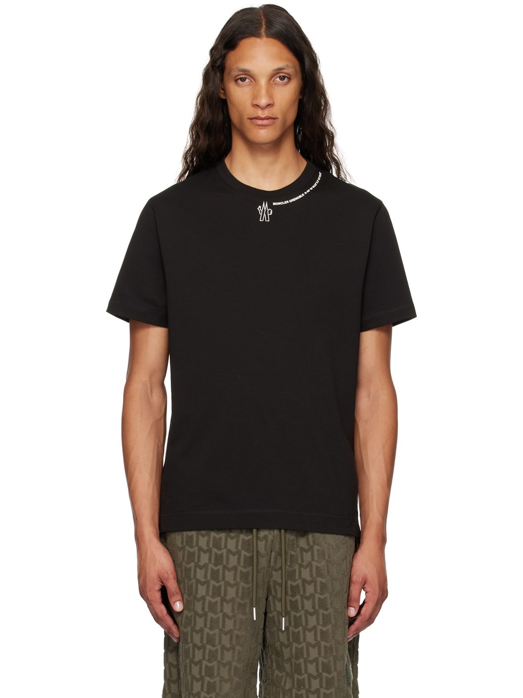 Cotton jersey T-shirt. · Rib knit crewneck · Logo and text printed at collar · Tricolor flag at side seam · Vented side seams · Text bonded at back hem Supplier color: Black 100% cotton. Made in Turkey 242826M213002