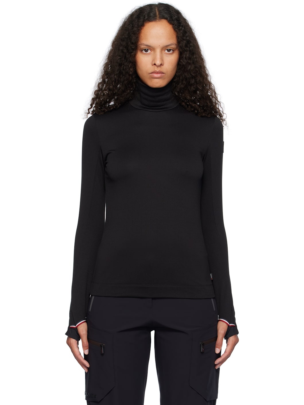 Lightweight Polartec® Power Grid ™ stretch polyester fleece turtleneck. Moisture-wicking and quick-drying. · Slim-fit · Logo flag at side seam · Rubberized logo patch at shoulder · Tricolor grosgrain trim at cuffs and back collar · Thumbhole at cuffs Supplier color: Black Body: 88% polyester, 12% elastane. Lining: 75% polyamide, 25% elastane. Made in Portugal 242826F561000