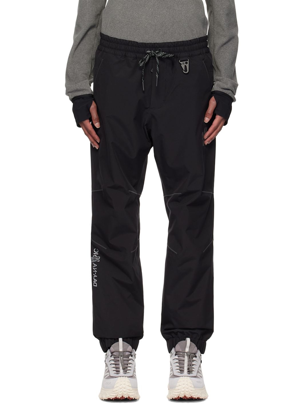 Padded GORE-TEX™ WINDSTOPPER® polyester taffeta trousers. Windproof, water-repellent, lightweight, and breathable. · Reflective trim bonded throughout · Drawstring at elasticized waistband · Two-pocket styling · Zip-fly · Lanyard-clasp at front waistband · Logo bonded at front and back · Reflective logo graphic printed at front · Elasticized cuffs · Logo flag at back waistband · Full stretch jersey lining Part of the Day-Namic collection. Supplier color: Black Body: 100% polyester. Fill: 100% polyester. Lining: 92% polyester, 8% elastane. Made in Romania 242826M191004