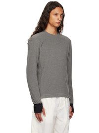 Polartec® polyester fleece sweater. Breathable. · Crewneck · Embroidered logo patch at sleeve · Thumbhole at inset bonded jersey cuffs · Storm flap and reflective logo at back · Locker loop at inner collar Part of the Moncler Grenoble Day-Namic collection. Supplier color: Grey Body: 100% polyester. Trim: 75% polyamide, 25% elastane. Made in Italy 242826M204000