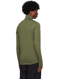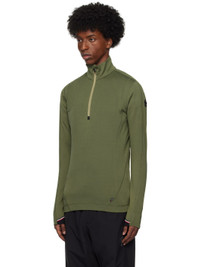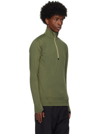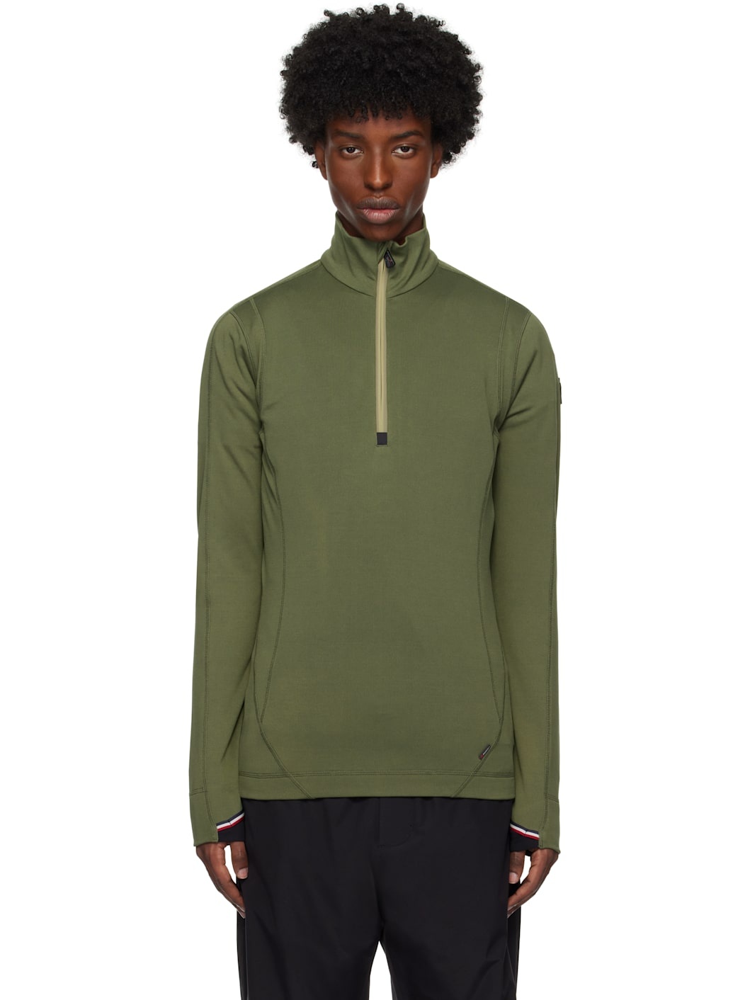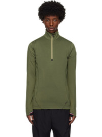 Polartec® Power Grid™ stretch polyester jersey sweater. Lightweight, breathable, fast-drying, and moisture-wicking. Water-repellent and wind-resistant. · Stand collar · Half-zip closure · Rubberized logo patch at sleeve · Thumbhole at elasticized cuffs · Tricolor grosgrain trim at cuffs Supplier color: Green Body 1: 88% polyester, 12% elastane. Body 2: 75% polyamide, 25% elastane. Made in Portugal 242826M202002