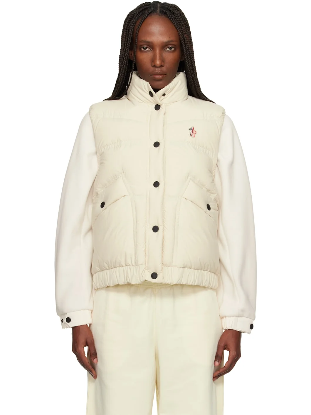 Down-filled and quilted nylon-blend taffeta jacket. · DIST-certified down · Stand collar · Press-stud closure · Embroidered logo patch at chest · Flap pockets at front · Elasticized hem · Zip pocket at interior · Full nylon satin lining Supplier color: Neutral Body: 65% polyamide, 35% polyester. Fill: 90% goose down, 10% feather. Lining: 100% polyamide. Made in Romania 252826F068000