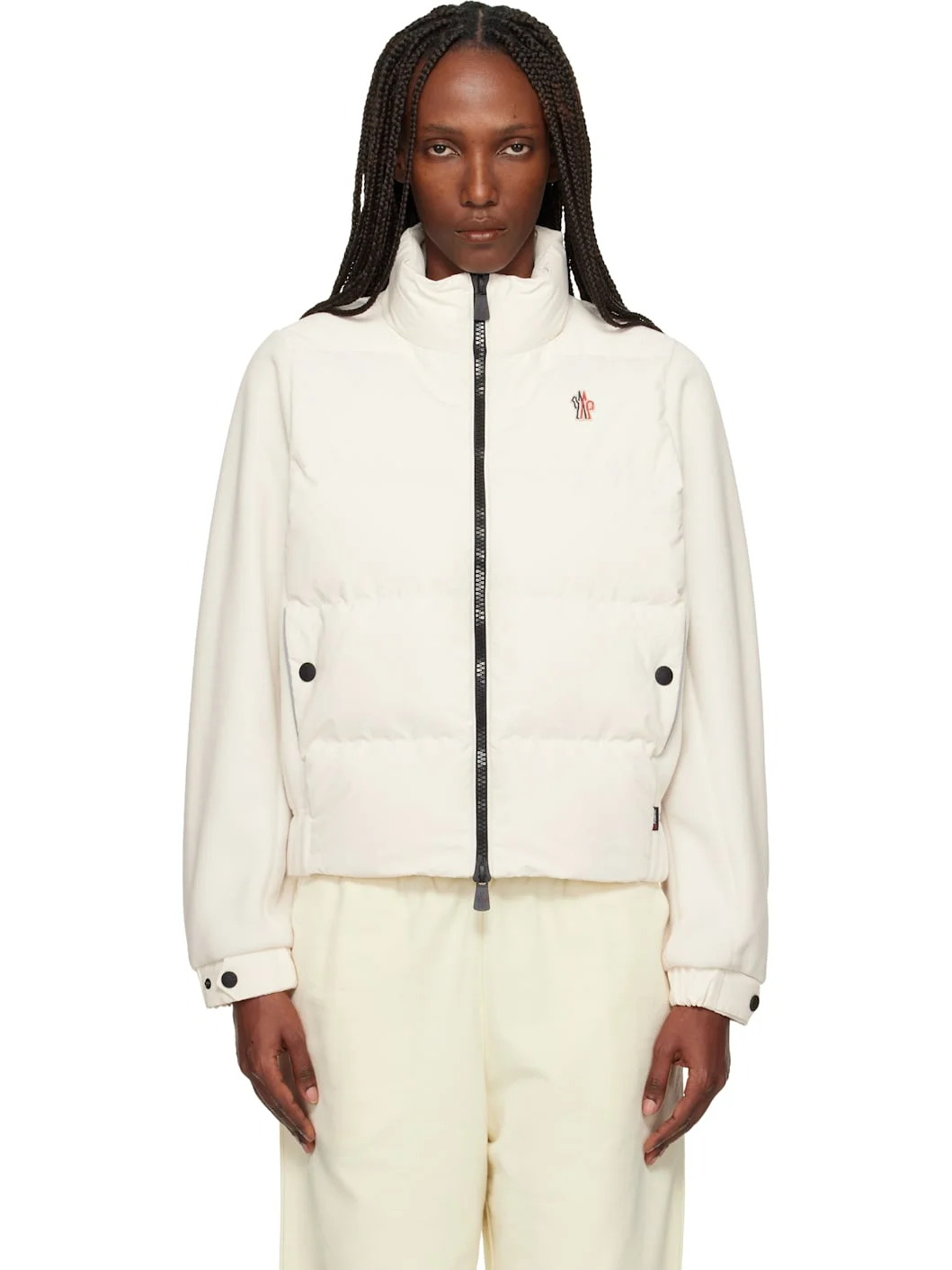Down-filled and quilted taffeta and Polartec® fleece jacket. · DIST-certified down · Paneled construction · Funnel neck · Two-way zip closure · Embroidered logo patch at chest · Seam pockets at waist · Elasticized hem and cuffs · Logo flag at side seam · Adjustable press-stud tab at cuffs · Logo bonded at back collar · Partial satin lining Supplier color: Neutral Body: 100% polyester. Fill: 90% goose down, 10% feather. Lining: 100% polyester. Made in Moldova 252826F063011