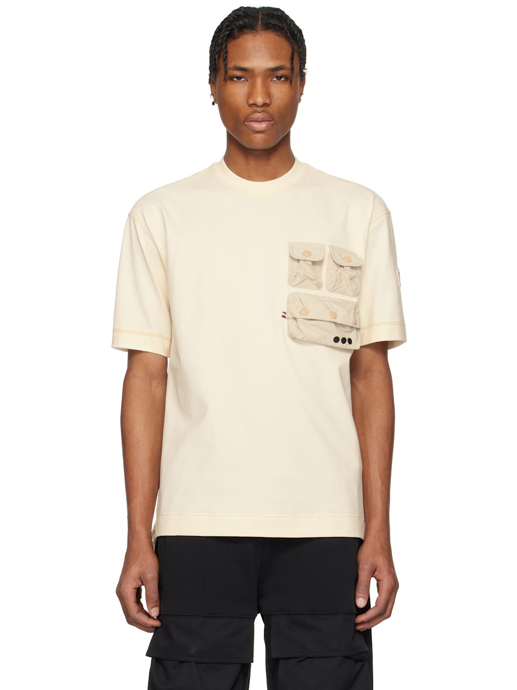Stretch cotton jersey T-shirt. · Rib-knit crewneck · Ripstop bellows pockets at chest · Tricolor logo flag at pocket · Droptail hem · Vented side seams · Embroidered logo patch at sleeve · Logo and text bonded at back · Ripstop panel at back hem · Logo-engraved black hardware Supplier color: White ivory Body: 95% cotton, 5% elastane. Trim: 70% polyester, 30% polyamide. Made in Turkey 251826M213005