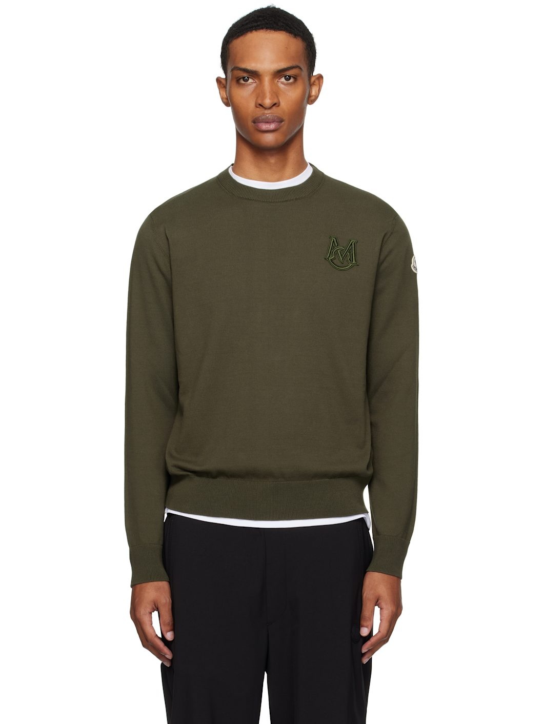 Khaki Embroidered Monogram Cotton Sweater