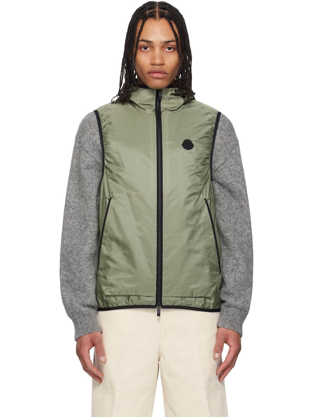 Nylon satin vest. Jersey piping throughout. · Reflective logo printed at hood and back · Zip closure · Rubberized logo patch at chest · Zip pockets · Zip pocket at interior · Fully lined Supplier color: Smokey olive 100% polyamide. Made in Romania 251111M185012